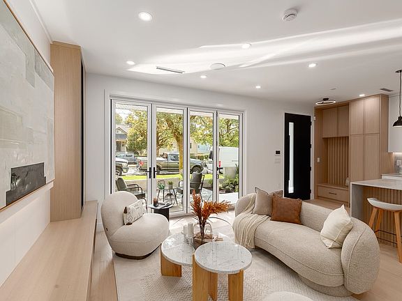 Front 1/2 duplex in coveted Cambie Village offering 1,900 sq.ft., 4 bedrooms & 3.5 baths. South-facing front terrace with Eclipse doors connects the bright living space to an outdoor kitchen for seamless entertaining. Oversized designer kitchen showcases integrated cabinetry & extensive millwork. Top floor loft is a highly functional 4th space with built-in desk, lounge area & ensuite primary featuring a curbless shower & room for a king bed. Private 1-car garage, radiant heat, A/C, Google thermostats, built-in surround sound & 4-camera security provide modern comfort. Exceptional walkability to Hillcrest Park, farmers market, shops & restaurants with quick access to Downtown & Kitsilano. Move in today. OPEN HOUSE SUN OCT 5th 2-4pm