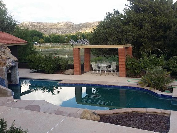 If you are looking for space in the country yet close to conveniences, this property may be the ticket. This Southwest Stucco bi-level home was built in 86, it has 4 Bedrooms 3 baths, Living and Family Rooms, 3667 SF. HLA area plus 3 car garage 1088 SF, and a 288 SF guest house with 3/4 bath. There is a beautiful pool, slide, and water fall, wonderful outside patios both covered and open. The property is nicely landscaped with major shade trees, fruit trees, and shrubs on a drip system from the private well that serves for water to this property. Eureka Ditch runs through the back of the property and below the ditch it is irrigated. There is a quarterly assessment fee for the grandfathered irrigation water. The lower acreage below the ditch is wire fenced to keep your livestock in.