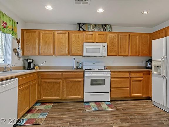 Meticulously maintained tri-story NW beauty with 3 bedrooms that all feature private full bathrooms. Private fenced yard on a quiet apron cul-de-sac location also close to guest parking. Home has ample storage areas, plus a convenient 2nd floor walk out balcony off the kitchen/dining area. Kitchen features solid surface counters and easy-care vinyl flooring. This is move-in ready with all appliances included plus washer and dryer! Full 2 car-garage. Close to shopping/dining and 215 and 95 freeway access, one block from Santa Fe Station casino.