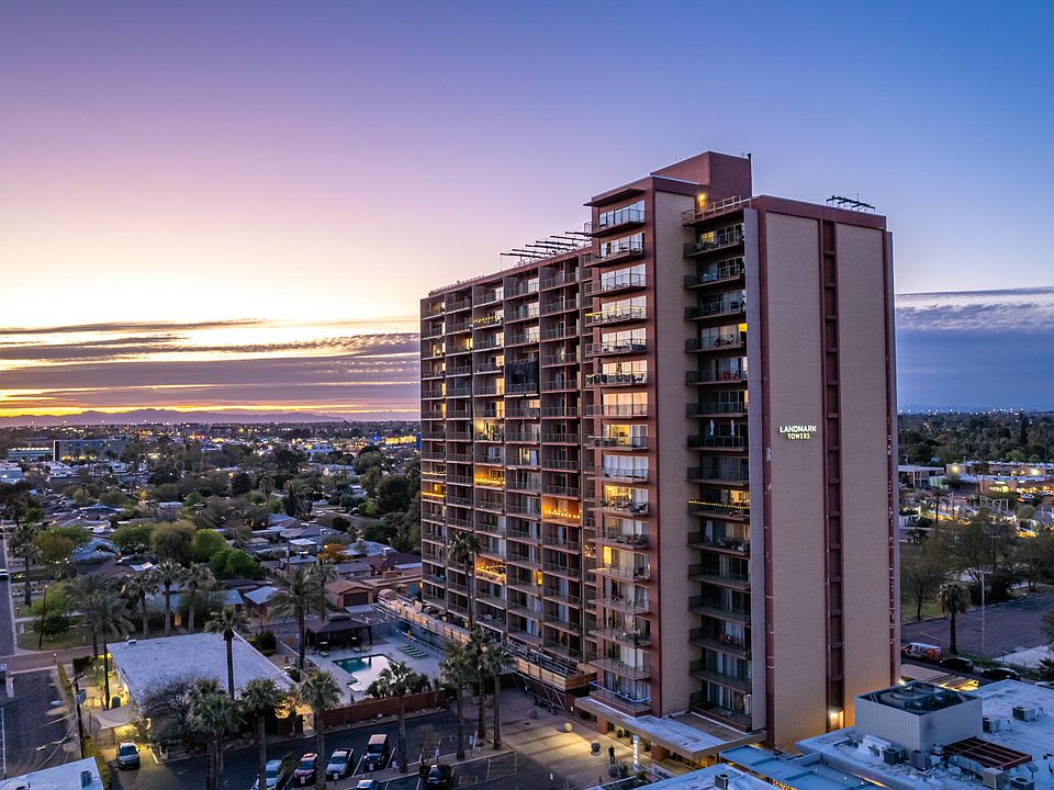 ELEVATE YOUR LIFESTYLE to decadent turnkey living on the 16TH FLOOR of ICONIC LANDMARK TOWER. Take in spectacular southern views from this UPPER LEVEL UNIT OVERLOOKING THE PHOENIX SKYLINE. Natural light pours through FLOOR-TO-CEILING GLASS DOORS from the dual balconies in the living & bedroom. Tastefully updated with eat-at marble counter, SS appliances, custom roller shades & tile throughout. AMENITIES GALORE: 24/7 concierge, heated pool/spa, rooftop sky lounge w/ firepit, fitness center, library, bike storage, dog run, clubhouse, billiard room, private movie theater & secure underground parking. ALL-INCLUSIVE HOA covers AC/Heat, water/sewer/trash & WiFi. Bistro cafe/wine bar at lobby level, steps to light rail & canal path. Welcome to your HISTORIC HIGH-RISE in the HEART of DOWNTOWN!
