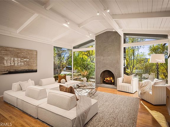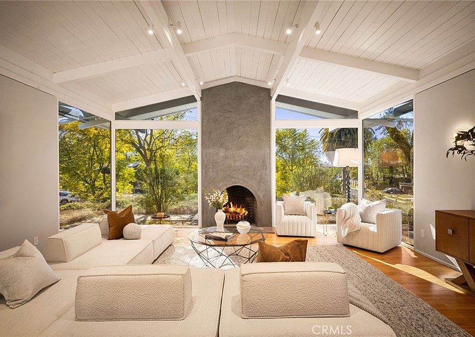 Welcome to 4750 Poe Avenue, a stunning mid-century modern masterpiece nestled in the prestigious Vista de Oro neighborhood of Woodland Hills. Designed by the acclaimed architect Louis M. Naidorf, celebrated for his work on Hollywood's iconic Capitol Records Building, this home was thoughtfully crafted as his personal residence. This architectural gem offers four bedrooms, four fully remodeled bathrooms, an office, and a den within its expansive 3,287 square feet. The home boasts exquisite custom white oak cabinetry and premium finishes that complement its modern aesthetic. Refinished floors throughout the residence add to its warm and inviting ambiance. The exterior is equally impressive, featuring a newly refinished pool with brand-new concrete surroundings, fresh landscaping, and a seamless indoor-outdoor flow. The smooth stucco finish enhances its timeless mid-century appeal.
