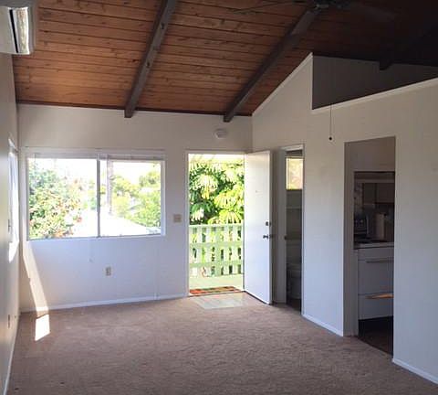 So. Upper Ocean Beach Studio/1 Bath - 3 blocks to the Beach. Clean and bright stand alone studio with peek ocean views. Perfect L-shape to create a separate bedroom (can fit King size bed) and living area. Air conditioning/Heater, vaulted wood beam ceilings, full size bathroom (tub and shower), separate kitchen, wood blinds. Laundry on site. In desirable South OB and centrally located so you can walk or bike to the beach and Sunset Cliffs Natural Park, Ocean Beach Farmer's Market, People's Organic Food Market, mini-Target, library, post office, and all the restaurants and shops. Located above Sunset Cliffs Blvd. 1-yr lease. Owner pays gardener & water. You pay gas/electricity, cable & internet. Smoke & vape free property. You must have excellent credit, verifiable income 2.5x Rent & verifiable rental and employment history. No co-signers. Renter's insurance req'd. Application fee per adult $40. One Cat OK; sorry, no dogs. NOTE: I do not post on Craigslist.