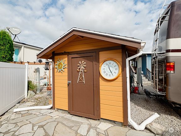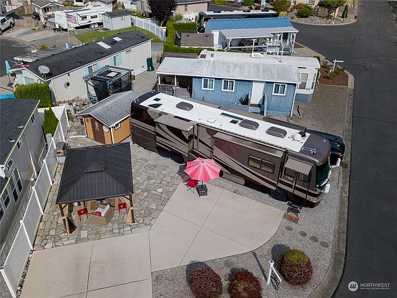 Welcome to Latitude 49 Resort Park! This spacious corner 180 day lot is located in a highly desirable part of community with no road noise and accommodates up to a 44-foot motorhome or a park model. Equipped with 30 & 50 amp electricity and sewer hookup, it’s ready for easy pull-in and relaxation. Enjoy the large gazebo on the new paver patio, perfect for outdoor lounging. Plus, there is an charming outbuilding to store your bikes, paddleboards, and more. The community offers incredible amenities, including a clubhouse, outdoor pool, pickleball courts, gym, on-site laundry and more. Just minutes from Birch Bay’s beaches—your ideal vacation spot awaits!