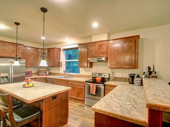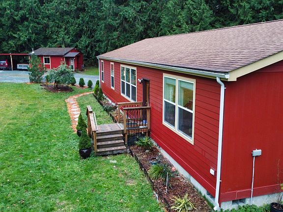 Private, beautifully updated home on 3 acres at the end of a private driveway. Open concept living with two eating counters at the kitchen, 9 ft. ceilings, heat pump, 6 person cedar sauna, oversized Milgard windows throughout, generator and large covered porch great for entertaining. The large master bedroom offers a large 5-piece master bath with a walk-in closet. Two guest rooms at the opposite end of the house, both with walk-in closets. Ample laundry room that leads to the rear deck. 3 bedroom septic, private well, partially fenced, fruit trees and beautiful sunsets. Detached garage/shop with carport. Enjoy walks in the old-growth forest that frames the south side of the house and has a year-round stream running through it.