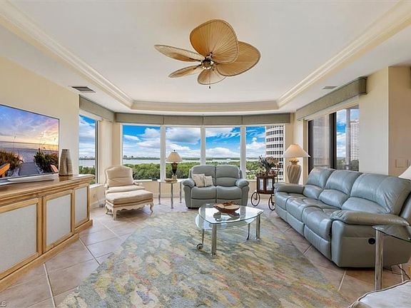 Enjoy breathtaking sunsets and sweeping views of Estero Bay and the Gulf from this 7th-floor end residence in the prestigious Vistas Tower at Bonita Bay. Thoughtfully designed for both comfort and entertaining, this spacious home offers over 3,000 total square feet, including three bedrooms and three full baths.  The light-filled floor plan features a great room that flows seamlessly into the large dining area — all framed by stunning water views. The wraparound screened lanai provides true year-round indoor/outdoor living. The well-designed kitchen overlooks the Gulf and adjoins a cozy breakfast nook, perfect for casual dining.  Each of the three bedrooms enjoys private terrace access, while the guest bedrooms are tucked away in a separate wing for added privacy. The owner’s suite offers two walk-in closets and a luxurious bath with dual vanities, a soaking tub, and a separate walk-in shower. Additional highlights include newer ac and water heater, two assigned parking spaces, and a climate-controlled storage unit.  The Vistas Tower has recently completed extensive updates, including a new roof, elevator enhancements, refreshed landscaping, and beautifully upgraded amenities. Residents enjoy a social room, fitness center with saunas, workshop, two guest suites, and an elevated pool and spa—perfect for relaxing under the Florida sun.  Set within the gated community of Bonita Bay, residents have access to miles of walking trails, community parks, pickleball and tennis courts, a boat dock, and a private beach shuttle—conveniently stopping right outside your door. Optional membership at Bonita Bay Club offers an unparalleled lifestyle with five championship golf courses, world-class tennis and pickleball, a luxurious spa and fitness center, multiple dining venues, and a full-service marina with over 400 boat slips.  Beautifully maintained, ideally located, and offering incredible value—this residence in Vistas Tower is a rare opportunity to experience the best of Bonita Bay living.
