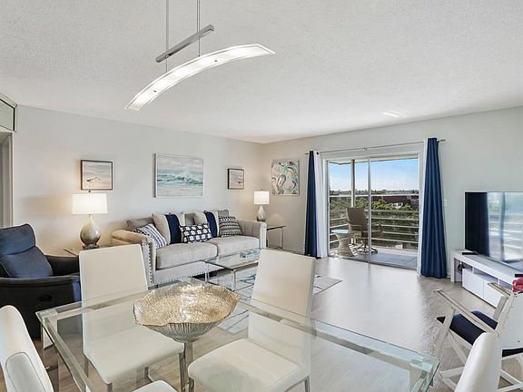 Top-floor 1-bedroom, 1.5-bath unit in the 55+ community of Castle Gardens. Immaculately clean and move-in ready, featuring laminate and ceramic tile flooring, updated bathrooms, and a renovated kitchen with new cabinets and stainless steel appliances. Bright, open-concept layout flows to contemporary furnishings throughout, creating a fresh, inviting feel. Furniture negotiable. Enjoy modern comforts, a carefree lifestyle, and all Castle Gardens has to offer. Schedule a tour today and make this stylish unit your very own.