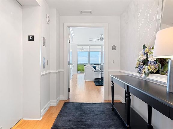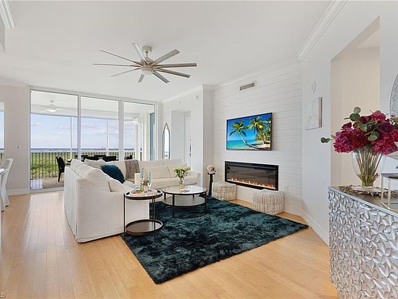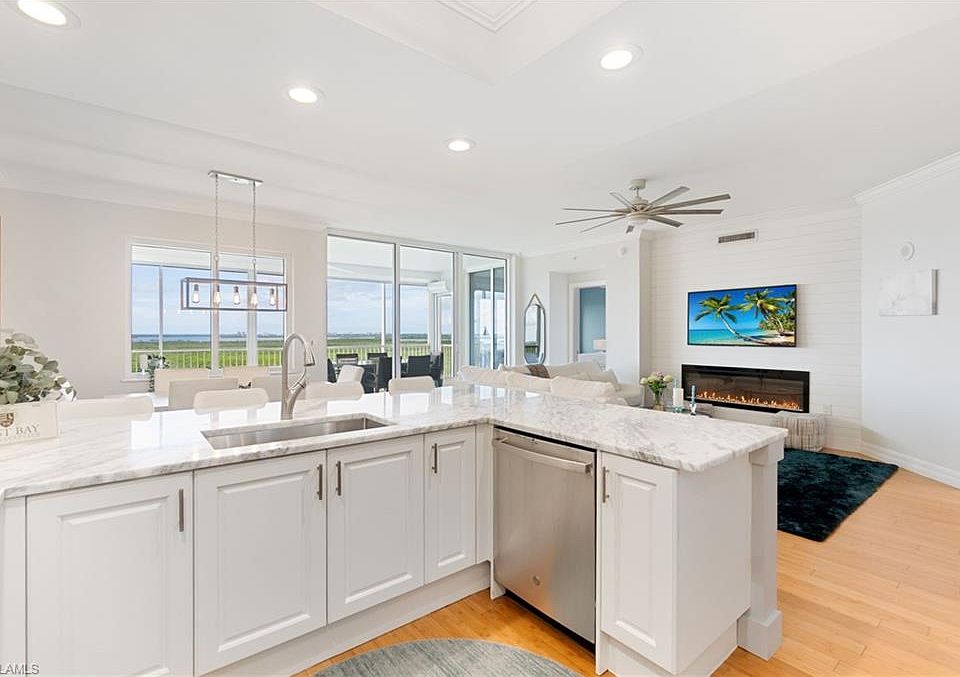 Experience refined coastal high-rise living in this completely updated 3-bedroom, 3-bath residence in Jasmine Bay South within the prestigious West Bay Club community. A private elevator opens directly into your personal lobby, welcoming you to 1,766 square feet of light, airy living space where coastal comfort meets modern luxury. The newly designed kitchen features elegant finishes, high-end appliances, and thoughtful details perfect for entertaining or everyday living. Shiplap accent walls, designer furnishings, and a sleek built-in wall fireplace create a warm, inviting ambiance throughout. Offered turnkey furnished, this stunning condo is move-in ready. Enjoy the best of both worlds with breathtaking western views that capture vibrant Gulf sunsets from your lanai—protected by hurricane roll-down shutters—and an eastern-facing balcony ideal for sipping your morning coffee as the sun rises. All the comforts of home with the amenities of a luxury resort! The building amenities include a resort pool with available cabana suites, fitness center in the building, theatre room, concierge attended entry at lobby level, beautifully update club room with kitchen, and 4 Guest Suites with terraces overlooking the lake. West Bay Club amenities include a new private Beach Club on the Gulf of Mexico with a restaurant/bar, plus chair and towel service. The newly renovated Bay House offers a resort-style pool, yoga studio, Pilates, stretching, spinning room, sauna, Aqua Cafe poolside restaurant for indoor or poolside dining, 8 clay tennis courts, and a Technogym state-of-the-art fitness center. West Bay’s River Park is on the Estero River and features a fishing pier, boat launch w/Gulf access, boat storage, kayaks/canoes, playground, basketball court, picnic areas, and a 1.5-mile walking trail. The Sports Park offers residents 6 pickleball courts, a fitness lawn, bocce courts, and 2 separate dog parks. Memberships are also available to the private 18-hole Pete and PB Dye golf course and clubhouse. Whether as a full-time residence or seasonal retreat, this stunning 10th-floor home offers effortless sophistication and the very best of Southwest Florida living.