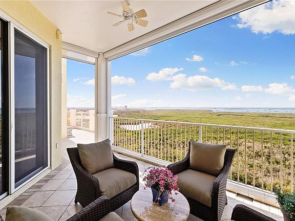 Electric vehicle chargerQuartzite countertopsCustom shadesOverlooking estero bayTwo balconiesPrivate two-car garageCarrara marble floors