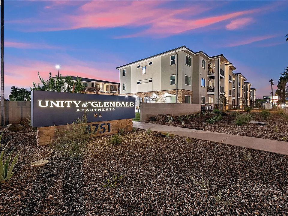 Welcome to Unity at Glendale! Designed for comfort and convenience, these one-, two-, and three-bedroom homes feature in-home washers and dryers, stainless steel Energy Star appliances, coat closets, and patios or balconies. The kitchen is equipped with a dishwasher, ice maker, and garbage disposal, making meal prep and cleanup effortless. Ceiling fans and mini-blinds enhance each space, while carpeted bedrooms and spacious closets in some homes add a touch of luxury.