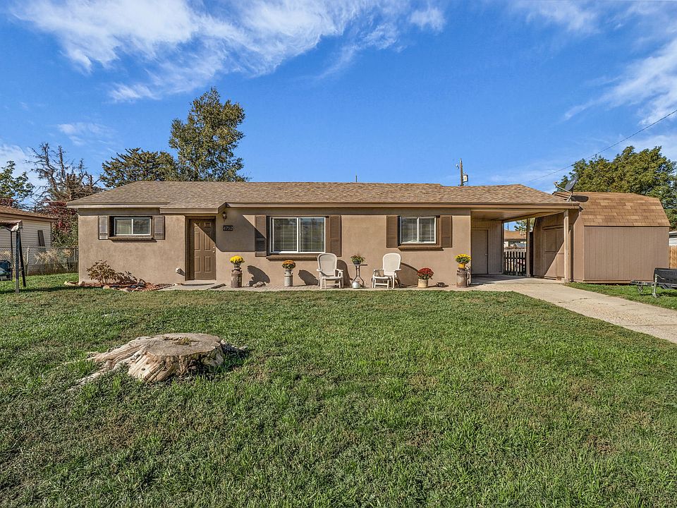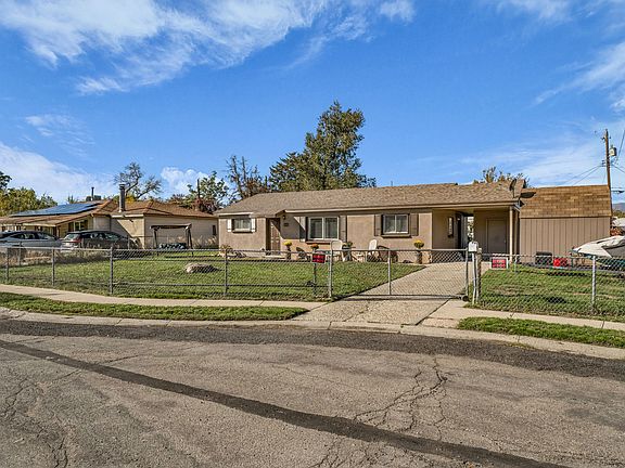 Charming east-facing rambler featuring fresh interior and exterior paint, new blinds, and a new dishwasher. This home offers a large, fully fenced front and backyard with a hot tub for your relaxation. Car port and plenty of parking for extra vehicles and toys, also included is a large spacious storage shed. Schedule a showing today!
