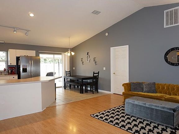 TURN KEY! This attractive and contemporary 3/2/2 home has a design that will definitely impress. The heart of the home has volume ceilings and a wide open concept, which feels very spacious and is perfect for family time or entertaining guests. The kitchen has plenty of cabinets and counter space, including a sizeable breakfast bar, and all the kitchen appliances convey. The split bedroom plan provides 2 identical bedrooms and guest bath in between, as well as a huge master suite that includes a roomy walk-in closet, garden tub, and separate shower. All of the bedrooms have brand new carpet, but you'll find tile in the living room all the wet areas. The sliding glass doors at the back of the home open to a fully screened patio where you can sit and watch the pets play in the fenced backyard. The 2 car garage has an automatic door opener, and plenty of room for your tools, if you like to tinker. This fantastic home is in a quiet neigborhood on a cul-de-sac street that has NO HOA OR CDD FEES! Yet, you can still enjoy tennis courts, racquetball courts, walking trail, waterpark, playgrounds, and numerous community events throughout the year at Zephyr Park, which is less than 1/2 mile away. What a great find! This is the one you've been searching for!