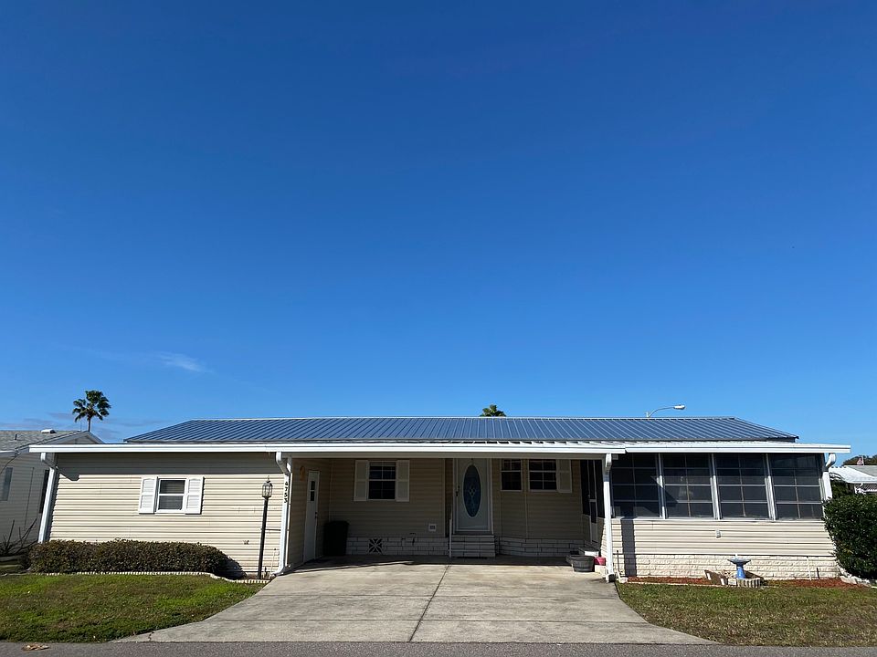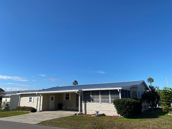 MOTIVATED SELLERS, BRING YOUR OFFER! BRAND NEW INTERIOR ON A CORNER LOT, OPEN FLOOR PLAN IN MUCH DESIRED CRYSTAL LAKE IN ZEPHYRHILLS! THIS HOME'S GRANITE COUNTERTOPS, SMART SOFT-CLOSE CABINETRY, LUXURY VINYL FLOORING, STAINLESS APPLIANCES, AND OPEN FLOOR PLAN IS AT THE TOP OF YOUR MUST-HAVES! NEW ROOF 2023!!! THE FLOOR PLAN OF THIS HOME OFFERS 1482 SQAURE FEET OF LIVING SPACE WITH AN OPEN CONCEPT IN THE LIVING AREAS. KITCHEN is open to the entire living and dining area with vinyl plank flooring, eye catching tiled backsplash, deep under mounted sink with overhead windows, granite island with bar seating for four, stainless oven with overhead microwave, stainless refrigerator, and pantry. LIVING area has bay windows, vinyl plank flooring, and lighted ceiling fan. DINING room has a large windows, chandelier, and sliding glass doors leading to Florida room. Entryway & foyer is `very inviting with a decorative storm door, and vinyl plank flooring. MAIN BEDROOM (14 X 15) is very large with vinyl plank flooring, lighted ceiling fan, and wall-to-wall deep walk-in closet (14 X 3 1/2). EN SUITE BATH has beautiful cabinetry with granite countertops, his & her sinks with decorative lighting, vanity area, linen closet, and a tiled walk-in shower. SECOND BEDROOM (12 X 10) has a lighted ceiling fan, and vinyl plank flooring. THIRD BEDROOM/DEN (11 1/2 X 12 1/2) has vinyl plank flooring, and lighted ceiling fan. SECOND bathroom has a raised toilet, and tub/shower combo. LAUNDRY room has vinyl plank flooring and window for natural light. FLORIDA ROOM (15 X 12) is right off of the dining area and level to the home with vinyl windows and faces south east. Outside at home has a double, horizontal facing carport (22 X 14), driveway (31 feet long), flowerbeds, corner lot, and large shed. Shed is very large (12 1/2 x 18) and has a built in workbench, overhead lighting, floor-to-ceiling shelving, separate electrical breaker, and a sprinkler system. WHOLE HOME STANDARD 40 GALLON WATER HEATER AND ALL ELECTRICAL REPLACED TO CODE. NEW metal roof over. ***CRYSTAL LAKE IS A 55+ LAND LEASE COMMUNITY (monthly lot rent is $717 and includes lawn care, gated community, use of all amenities, and pass-through tax). This is a pet-friendly (1 dog/1 cat under 40lbs). Packed full of exciting amenities such as an on-site fitness center, game room, community swimming pool, shuffle board courts, picnic areas, fishing, and hot tub. CONTACT LISTING AGENT ONLY FOR MORE INFORMATION AND TO SCHEDULE A SHOWING.