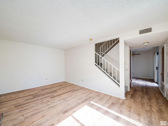Located in a quiet community with park-style landscaping. This ground floor property faces a large grass area overlooking a flowing creek. 5 minute walk to Donner Springs Elementary School. Close to shopping, parks and beautiful hiking trails. HOA fees include water, trash, TV and internet. FHA approved!