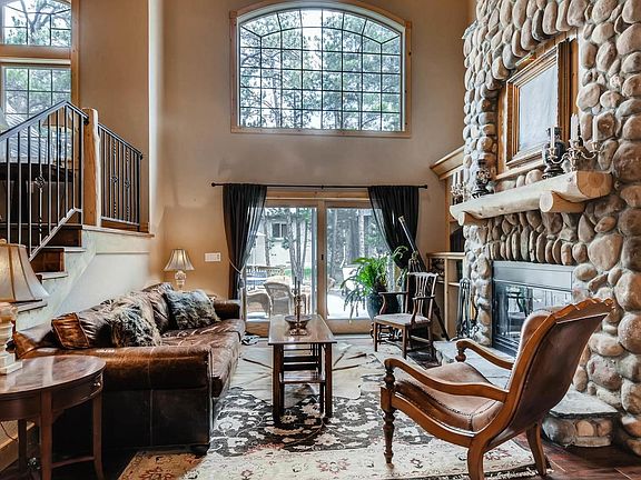 Stunning hand crafted home! The finest details throughout! Enjoy the main level master retreat that opens up to an enormous deck and heavily treed lot! Masterfully appointed kitchen with gourmet appliances, hand carved pine logs from this very lot! This home is so very special! Don't miss it! Soaring vaults with an excellent floor to ceiling stone fireplace, it is truly a work of art! Live, breathe and feel the rustic, mountain splendor! Also, you get tow houses for the price of one! There is a cute tree house and storage shed too!