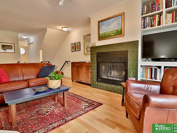 Beautiful updates over the last 5 years! Hardwood floors throughout the main level. Spacious living room with wood burning fireplace, built-ins and triple window sliding door with blinds between the glass. Renovated kitchen with granite, butcher block, subway tile, ss appliances & serving window open to the dining room. Primary bedroom has "Juliet" balcony with birds-eye view to the south east. Both bathrooms renovated 2022 creating a spa-like atmosphere including a large soaking tub. AC new 2023. HOA covers water, insurance, lawn & snow, exterior maintenance, common space maintenance. Located near UNMC, UNO, Dundee Business District, Blackstone, & Aksarben Village. Just a couple blocks west of new (late ’24) The Catalyst, $65M UNMC project expected to be NE new medical business hub.
