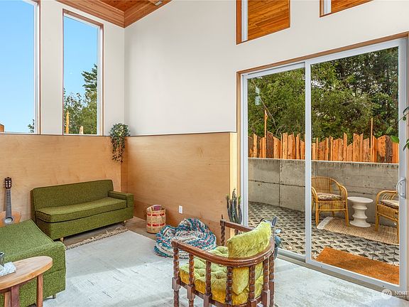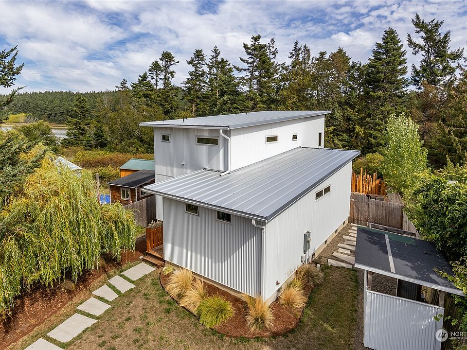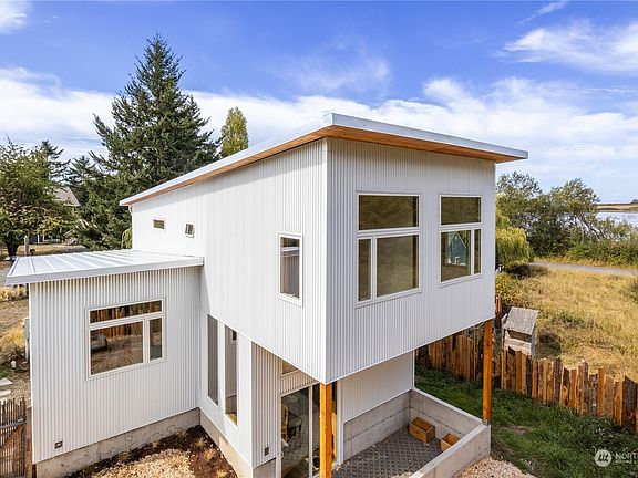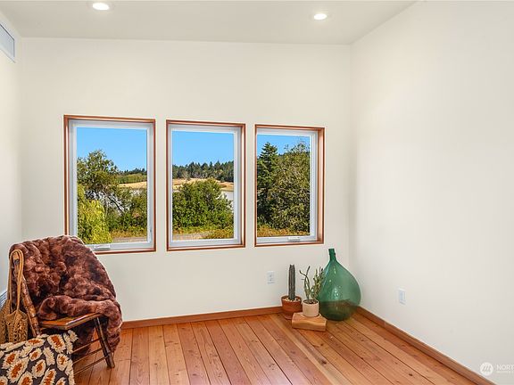 This beautifully constructed 2019 built modern home is placed perfectly between Fort Worden & the coveted North Beach area. Seller designed and built, this is a one-of-a-kind property. Energy efficient, low maintenance exterior and every window, wall and room have great intentional detail. 3 bedrooms, 2.5 bath with first floor 8' & 13' ceilings. This home is complete with a chef’s kitchen, radiant heated concrete floors, incredible light, space for entertaining, rooms for an office or an artist to create and a semi sound proof musicians room. There is additional storage of almost 4' high & runs most of the sqft of main floor (off living room). Every window is like a moving picture capturing lush green surroundings &/or the Chinese Gardens.