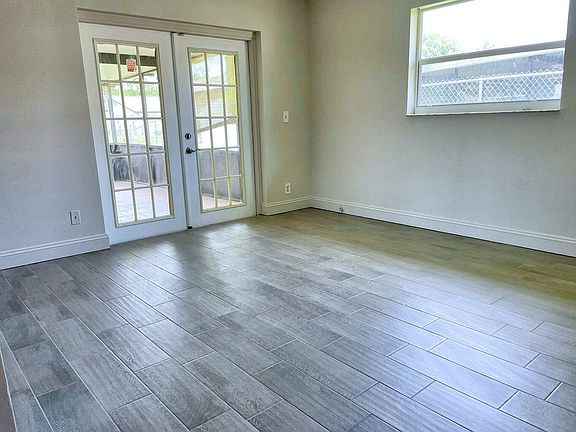 Courtesy of The Palm Beach Group This three-bedroom, two-bathroom home with a fenced-in yard is perfect for those who want a home without an HOA. It is tiled throughout and has a newer roof, A/C, and a large screened-in patio. It has a laundry room, parking for two cars, and is pet-friendly.