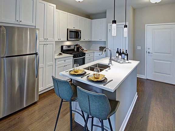 Furnished apartment homesQuartz kitchen countertopsStainless steel appliancesEco-friendly wood style flooring