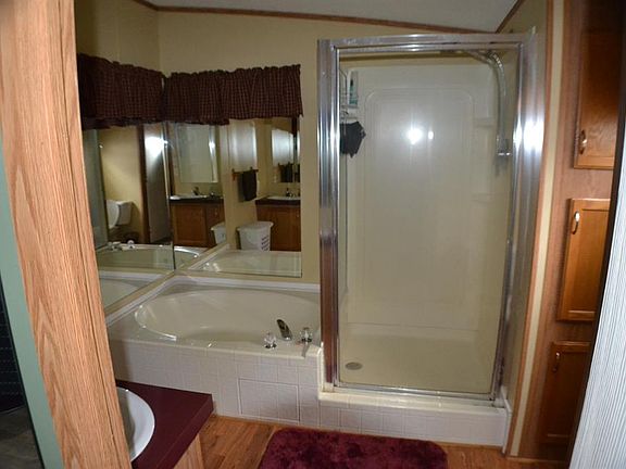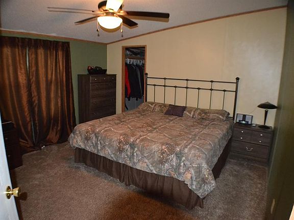 3 bdrm, 2 bath manufactured home sitting on 2.72 acres. Electric heat, new metal roof & porches, new doors & windows, new flooring & sidewalks. The property has a beautiful pond w/deck & a 48x45 finished shop built in 2010. This shop has concrete floors, 220 electric, paint booth, kitchen, walk-in cooler, 12x45 shed. New 32x72 garage built in 2016.