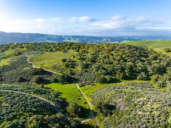 Hawk's Perch; An incredible private off-grid retreat located in the Santa Rita Hills; one of the most sought-after wine-producing regions in the country. Parcel is a top of the hill secluded 40 acres with a fenced 400 tree olive orchard, separate fruit orchard, and appropriate soil and slopes for planting your own Sta. Hills vines. Bring your horses, hunt quail and deer, watch SpaceX launches from Vandenberg! The rolling hills display a healthy native Oak Woodland biome covering a majority of the property with stunning views of the Santa Ynez river valley. The woodlands' health is noticeable in comparison to adjacent over-grazed properties and is therefore a refuge to many animal and bird species. The entire perimeter of the property is fenced, keeping out cattle in the area. A 12-15 gpm well feeds two 1500 gallon cisterns which in turn supply the orchards and compound.