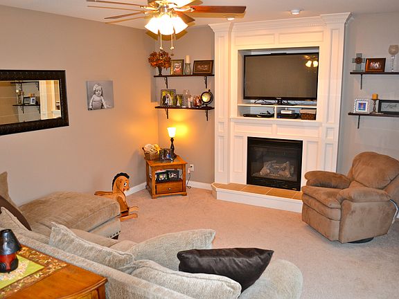 ALMOST 2800 FINISHED SQUARE FEET! NEWLY FINISHED BASEMENT! 4 bed, 2 full bath and 2 half bath!Beautiful, gently lived in home in the desirable, family friendly Copper Creek subdivision. Home sits on a child friendly/safe cul de sac with wonderful neighbors! The home invites you in with the full front porch. Once inside you are welcomed by a 2-story entry with a plant shelf above the front door. The formal dining room is off to the right and open kitchen with a center island, granite countertops, and large pantry along with the dining area and family room with gas fireplace are at the rear of the home. The second floor laundry is convenient for the four large bedrooms. Master suite includes tray ceilings, a jetted tub and separate shower, and a huge walk-in closet. There is a pretty view from the bedrooms of a pond, as well. Basement was finished very recently in November- includes a half bath and a nice size storage room! Surround sound is wired and ready to go! Front yard has been very nicely landscaped and the back yard is nicely sized with a hill to add privacy. Under ground electric dog fence has been installed around the perimeter of the home. Additional property info: http://www.forsalebyowner.com/listing/4-bed-Single-Family-home-for-sale-by-owner-4755-Windsor-Circle-50327/23970809?provider_id=28079
