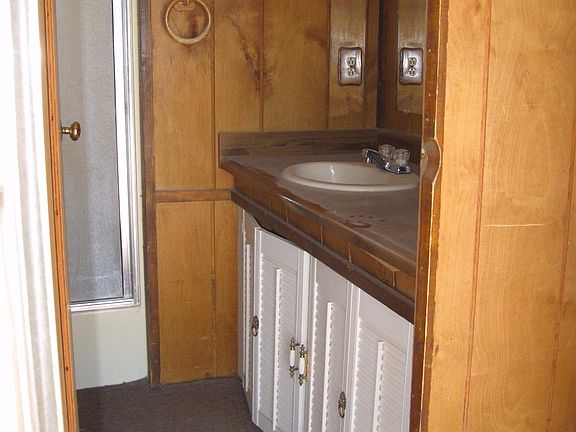 Former Fantastic 2 1/2 Acre Lake Oasis fenced with locked gate. Small cabin with extra large deck overlooking lake, and covered patio. Newer large detached garage 896SF with 14x24 carport or covered patio. The garage has 220/110 electric, garage door opener, 3/4 bathroom, washer dryer hook ups, and storage area. Three RV Hook Ups with water and electric boxes. There are 3 septic tanks; one septic for house, one septic for garage, and one septic for RV spaces. Large waterfall feature that once flowed into the lake. Cabin is a pre 1976 single wide mobile with quality frame built add on. The clay is there to line the edge of the lake and fill the lake back up. additional 5 Acre APN 0531-141-37-0000. Previous listing said cabin square footage 980. Assessor shows 810sf. Contact Lisa White 760.486.1642.