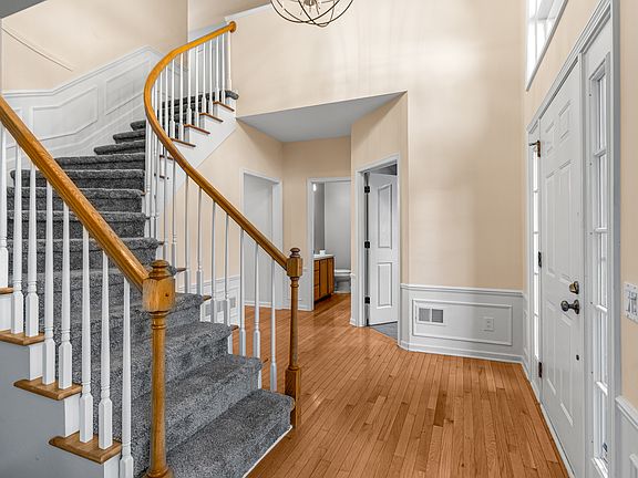Welcome to the Fox Run subdivision. Rare opportunity to lease this well-maintained colonial. It will feel like home the minute you walk in. Impressive two-story foyer with hardwood floors. Gourmet kitchen features recessed lighting, a large center island, and a cozy breakfast nook with sliding door to the deck. Vaulted living room, private office with crown molding, and formal dining room with custom tray ceiling and elegant crown molding. Expansive two-story great room with gas fireplace, second staircase, and stunning Palladian window overlooking the commons. Vaulted primary suite includes a luxurious bath with jetted tub, dual vanities, and walk-in closet. New paint and carpet. Tenant responsible for all utilities. Small pets negotiable.