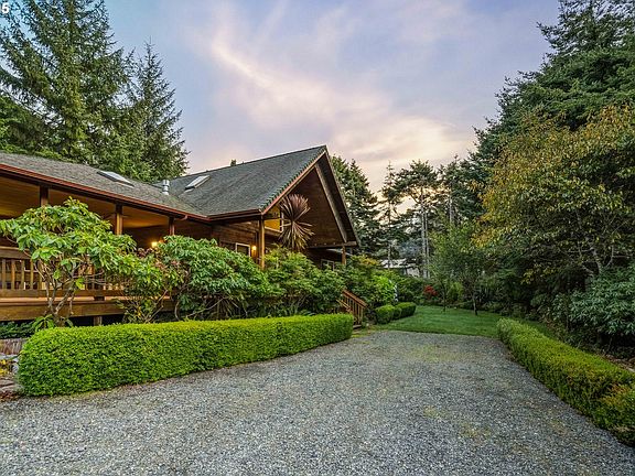 Cool Craftsman Lake Cabin at Floras Lake! Discover this Charming Craftsman Lake Cabin just Steps from Floras Lake and only a 5–10 Minute Walk to the Ocean and Beach from your Front Door! Enjoy 2,661sf of Living Space featuring 3 Bedrooms, 3 Baths, and .72 Acres (across 7 Separate Tax Lots). The Spacious Bonus Room offers endless options — ideal for a Craft Room, Office, Den, Home Gym, or even a Possible 4th Bedroom. The Gourmet Kitchen is a true Showstopper with Custom Cabinets (Shaker-Style Doors), Stainless Steel Appliances, a Large Center Island with Raised Bartop, Beautiful Granite Countertops, 5-Burner Gas Cooktop, Bar Sink, Double Ovens, Built-In Microwave, and Abundant Cabinetry for Extra Storage. Step Outside and you’ll find a Covered Entry Overhang, a Massive Wrap-Around Covered Deck with Stairways to the Yard and Driveway, plus a Smaller Deck off the Kitchen Slider and Primary Bedroom — complete with a Private Hot Tub. Also, there’s Mature Landscaping, Stamped Concrete, a Heat Pump, and so much more!! The Detached Garage includes a 1-Bedroom Guest Quarters featuring its own Balcony — perfect for Extended Family or Guests. There’s also an Outdoor Shower conveniently located near the Garage Man Door. Entertain with ease in the Large Covered Patio Area between the Main House and Garage — ideal for Parties, Live Music and Dancing, BBQs, or Relaxing Evenings Outdoors! Just a short stroll to Floras Lake, where you can enjoy Windsurfing, Kiteboarding, SUP, Kayaking, Jet Skiing, Boating, and Fishing. Explore endless Trails, Beaches, and Scenic Adventures nearby. Located 20 Minutes South of Bandon by the Sea and 30 Minutes from Bandon Dunes Golf Resort. MUST-SEE VIDEO & VIRTUAL TOUR LINK AVAILABLE!
