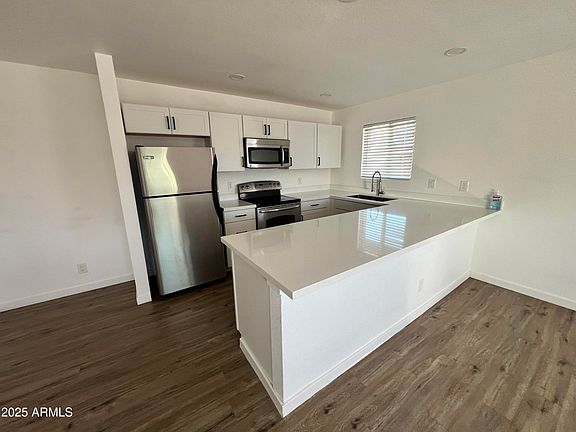 : Fully updated 2-bedroom, 1-bath townhome in the gated Villa Verde community! Features include an open floor plan with abundant natural light, new laminate flooring, fresh paint, and an updated kitchen with white shaker cabinets, quartz countertops, and stainless-steel appliances. Enjoy in-unit laundry and modern finishes throughout. Conveniently located near Sky Harbor Airport, Downtown Phoenix, Papago Park, Tempe, restaurants, shopping, and freeway access. Move-in ready!