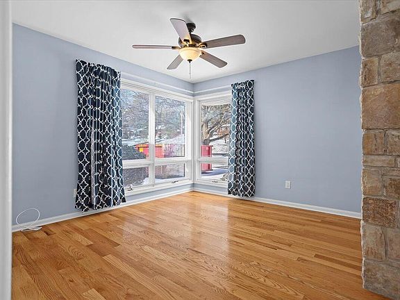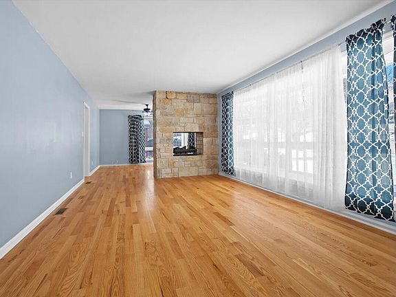 This home is located close to everything. It features 4 bedrooms, 2 1/2 baths all on the entry level . The living room is large. The fire place is shared with the dining room. The primary bedroom is large with 4 closets. The kitchen was remodeled in 2020 withan island, quartz counters, and LVP flooring. The rest of the home has hardwood floors and ceramic tile in the baths. There are hookups for a laundry on both floors. The basement has a large family room with a fireplace, carpeted floors, and storage. There is heat pump heat with A/C with gas heat backup. A tankless gas water heater. Outside you have replacement windows, a double car garage, covered porch, patio, a storage shed all on a .73 acre lot. Last there is a 12X25 Salt Water Pool inside a moveable stand up cover.