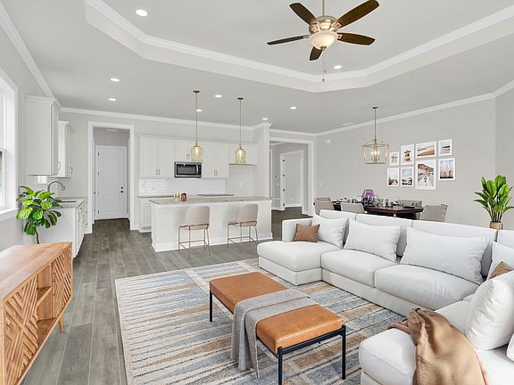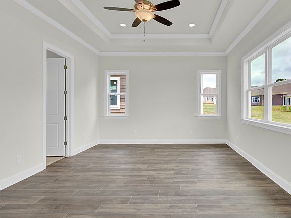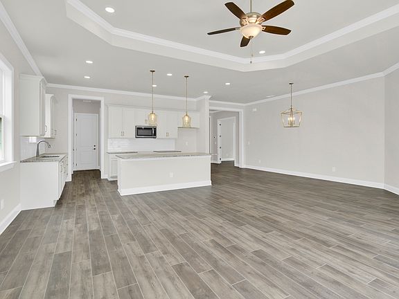 Desirable Corner Lot! This spacious ranch-style residence features impressive 10-foot ceilings throughout, enhancing the sense of openness and elegance. Lawn maintenance is included for added convenience. The open-concept floor plan is thoughtfully designed with oversized doorways and wide hallways to facilitate ease of movement. The kitchen offers abundant storage, a substantial island, extensive cabinetry, and a generous walk-in pantry, making it ideal for both everyday living and entertaining. The primary suite is distinguished by a tray ceiling and an adjoining expansive bathroom, complete with a large walk-in shower. Ample closet space is available throughout the home.