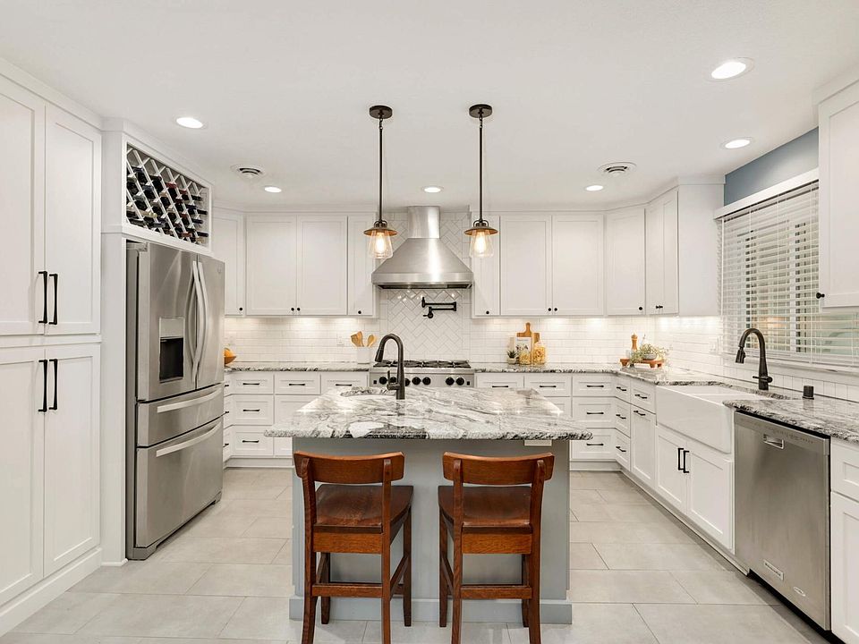 Welcome to this beautiful & perfectly maintained rambler, featuring a remodeled kitchen, one-of-a-kind 3-season porch w/ numerous updates throughout. The thoughtfully designed kitchen includes granite countertops, stainless steel appliances, pot filler, gas range & stove, large island w/second sink, & corner cabinet drawers to maximize storage. The refinished hardwood floors were expanded & a new patio door was installed leading to a dream porch. The porch was rebuilt w/ removable windows transforming the space into a screen porch. This home also offers an open concept floor plan, main level bedrooms, & a large basement family room. The basement has ample amounts of storage, a large forth bedroom, & TWO dryers. The 3rd stall garage is detached making for a perfect storage space for all your outdoor toys. Additional updates: Roof (2018), AC (2019), city sewer pipe replaced (2021), exterior painted (2022) & much more. Close to parks, amenities, & highways. Move in ready!