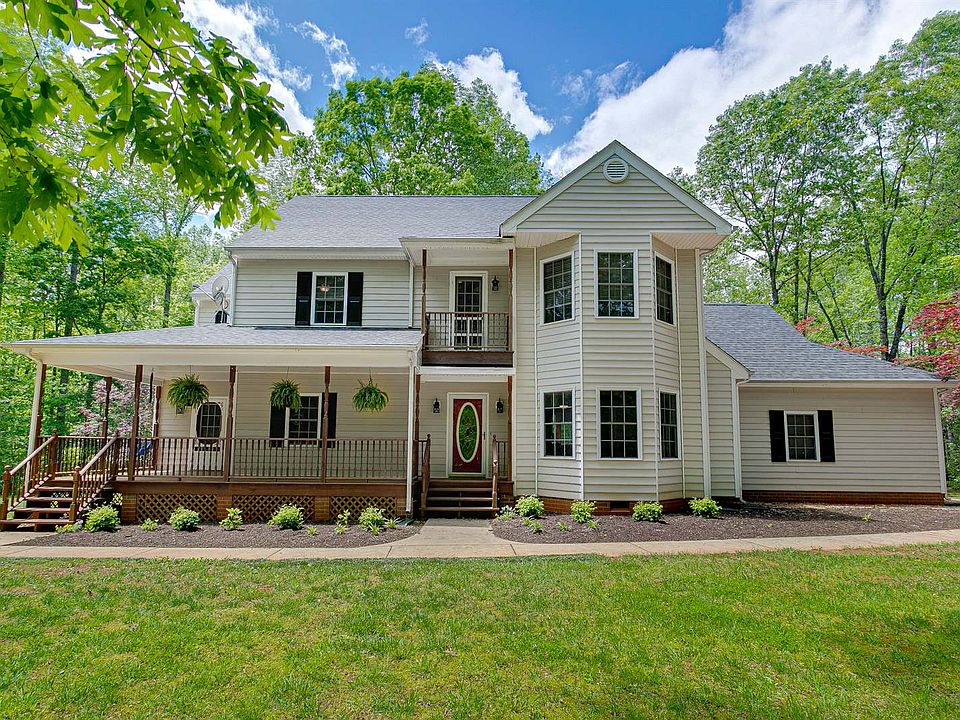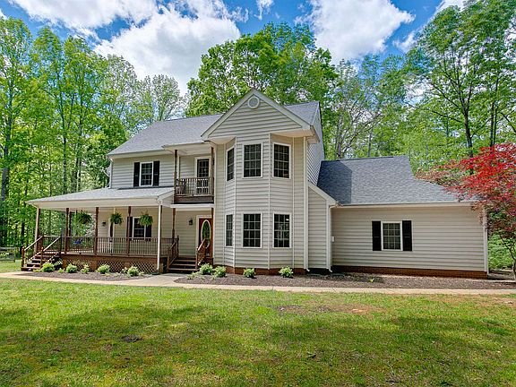 Farmhouse feel with modern touches! This home really has it all! 3 bedrooms, 2.5 baths, 2 living spaces, granite/stainless eat-in kitchen also has breakfast bar, French doors to the expansive rear deck, huge front porch, first-level office with separate entrance, 2 car attached garage...but saving the best for last...the master suite is a retreat! Bay window, amazing bath with separate jetted tub and glass & tile shower, lots of closet space with mirrors and a dressing area...which has access to a private covered balcony. The 2 other bedrooms are spacious, and the hall full bath has lots of room to get ready in the mornings! This home is beautifully positioned on 3.5 private acres which offers park like views with mature landscaping. The outdoor living spaces are extremely generous (front porch, two-level rear deck, patio). The 2-car garage is oversized (24x24) and has direct entry to the home. Beautiful color palette and is move in ready! Entertaining here is a breeze - inside and outside - year-round! Brand New Roof and Water Heater! Home is conveniently located midway between Richmond and Charlottesville. Be sure to check out the 3-D Matterport Tour and Virtual Tour, attached.
