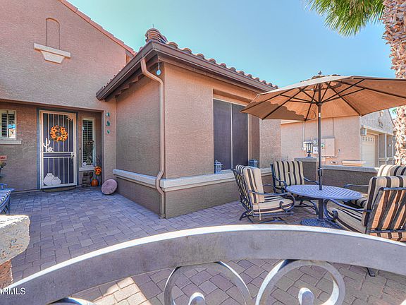 Beautiful 2,250 sqft FURNISHED Integra block home w/front gated courtyard has 2 Bedrooms,2.5 Baths,Den/Bedroom & 3 Car Garage.Bosch HVAC unit installed. Kitchen has tons of cabinets,engineered stone counters,SS appliances (New fridge,sink,garbage disposal),gas cooktop,butler's pantry,under cabinet lighting double wall ovens & microwave!ALL TILE-NO CARPET,Plantation shutters throughout,bay window in the dining area.Master bedroom has a bay window,bath has shower & separate tub,dual sinks & a large walk-in closet.New sinks in the guest bath & powder room. The 3-car garage has epoxy flooring,built in cabinets & new water heater.Backyard has a large covered epoxied patio plus pergola w/extended pavers,remote controlled blinds,soft tub,new PVC irrigation system w/new valves & controller.
