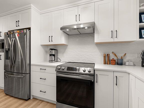 Corner unitNew kitchenWarm vinyl plank flooringOpen planStylish gas feature fireplacePrivate deckIn suite laundry room
