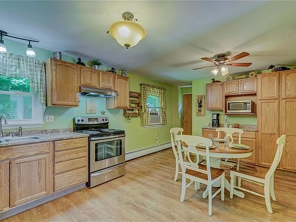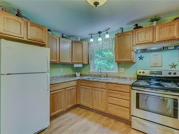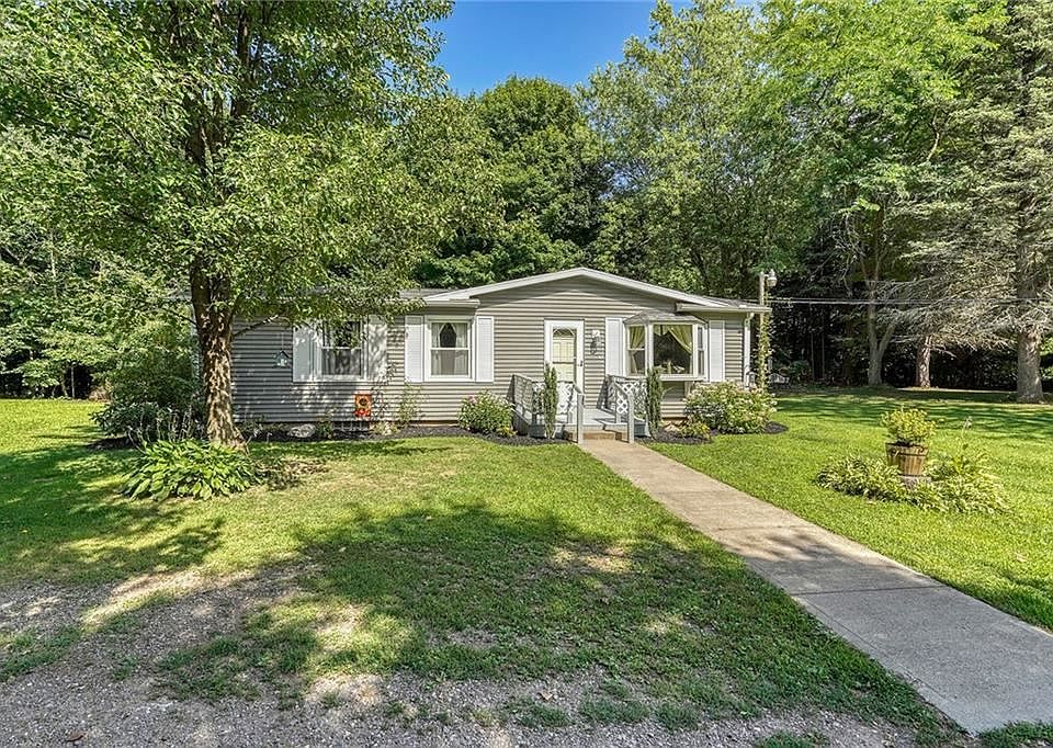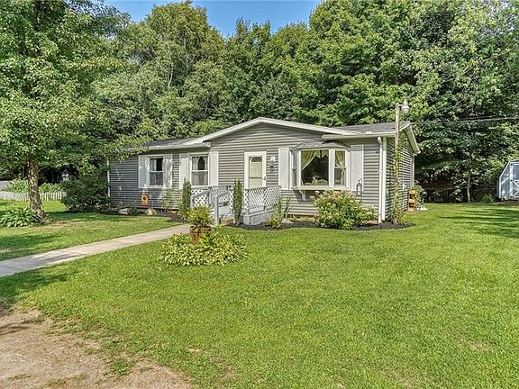 BEAUTIFULLY Updated COZY Ranch in a GENEROUS PRIVATE Setting Surrounded by Tall Towering Trees! Updated Eat-in OAK Kitchen w/Coffee Bar, Pantry, NEWER Laminate Floor & Lighting-PLENTY of Room for Preparation & Serving Meals! BAY-WINDOW LivingRm Adorned w/GORGEOUS NEW 3/4" OAK HARDWOOD Floor & Ceiling Fan/Light! All 3 Bedrooms have NEWER CARPET! LOVELY & STRIKING UPDATED Bath w/NEW Vanity w/GRANITE Top, NEW Toilet, Hardware, Fixtures, Lights, PORCELAIN Floor! WALK-OUT Bilco Door Basement w/Some BLOCK Windows! Other UPDATES Incl: FRESHLY Painted Interior*NEWER Windows*ROOF 5 Years*FURNACE 2020*H2O Heater 2020*Some Interior&Exterior LIGHTING*Remodeled Basement Stairway! CONVENIENT Garden Shed & Awesome Swing Set! ENJOY Evenings Gathered Around the Rear-Yard FIREPIT! CIRCULAR Driveway! PUBLIC WATER at Road! WELCOME HOME!