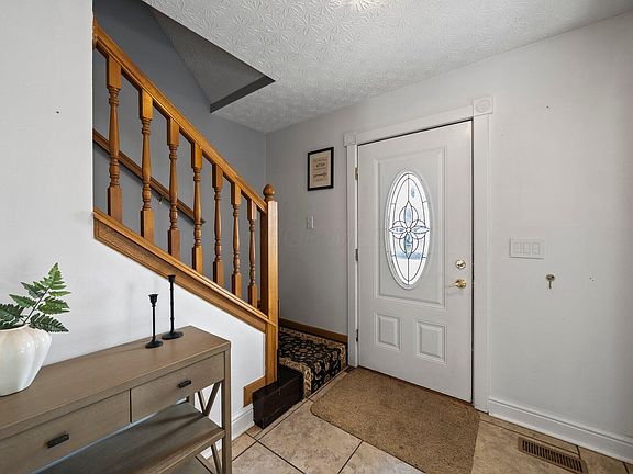 Welcome to this charming 4-bedroom, 2.5-bath home in the heart of Groveport! Featuring a fantastic layout, it offers a formal living and dining area with marble tile flooring. The great room boasts a vaulted ceiling, cozy fireplace, and backyard access—perfect for relaxing or entertaining. The kitchen has ample cabinet space, a functional island, and an open feel. Upstairs, the primary suite offers a vaulted ceiling, walk-in closet, double vanity, and whirlpool tub. Major updates include new furnace & AC (2021), new roof (2021), tankless water heater (2022), and induction stove (2024). Additional highlights include a finished basement, first-floor laundry, and a detached shed with a partially finished play space. Conveniently located near Columbus—schedule your showing today!