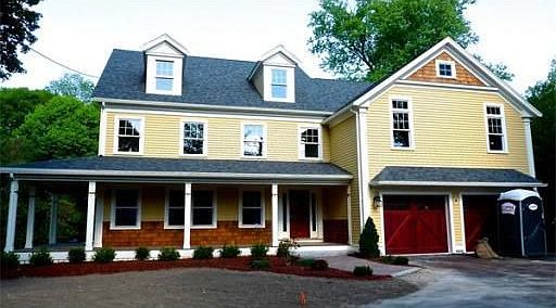 New Construction: Stylish Farmhouse Colonial with wrap-around porch on beautiful 3/4 acre lot. Spacious and open ideal home to entertain, a large kitchen with large granite opens to a huge family room with walls of glass to mahogany deck overlooking a private yard. The master has a vaulted ceiling, twin closets, an impressive bath with oversized shower. Large bedrooms. Walk-up 3rd floor with guest room, full bath and sitting room. Walk to train and town.