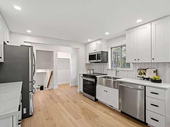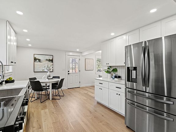 This multi-level home has been through a full, custom renovation and is now ready to welcome its new owners. Filled with amazing light from all new windows, this property has had every corner updated and improved. From the brand new septic system to the new roof, from the composite deck to the replacement doors, this house has been meticulously transformed. Enter in through the front door to find that wide plank French oak flooring has been installed throughout. To the left, the kitchen makeover includes quartz countertops, stainless steel appliances, a farm house sink and an amazing glass backsplash. The space is open to the dining area as well as the living room which boasts both a fireplace and a great picture window. The upper level has three bedrooms and a fully refurbished bathroom. Downstairs you'll find a new half bath along with office space, a mudroom and utility closets. Across from Featherland Park, this amazing property has a a fantastic yard with multiple fruit trees.