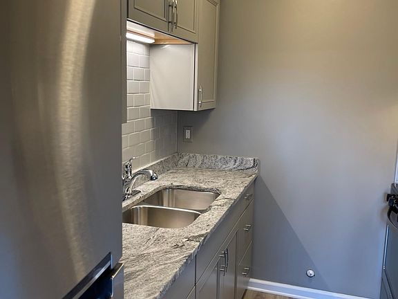 This aprtment has new stainless steel appliances and new cabinets. It has granite countertops and is done in soft grey tones. Bath is newly redone and has extra linen storage. Living room is 10 x 14 and bedroom is 10x14 and will take a king size bed. Linen closet in bath, large double closet in bedroom and small closet n entry.There is off street parking. Sorry, no pets and no smoking.