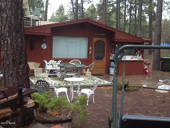 Great cabin with house, 2 Bedroom 2 baths in main house and a bunk guest house (20 X 16) with built in bunks and a bathroom. Really cute place with eat in kitchen and lots of wood throughout the home, nice well treed lot with a one car carport, back yard patio and a front deck extending the length of home to sit on, a large shed and a smaller one for keeping all of your treasures. All the cabin you could ask for, nice lot good area in the cool tall pines of Lakeside.