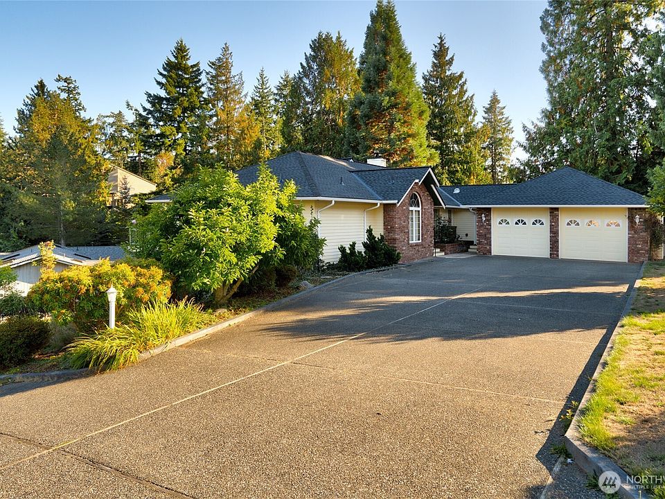 476 Nez Perce Place offers the best of Shelter Bay living! The main level features a spacious primary ensuite, office, wraparound deck, large living room, open kitchen, powder bath, laundry, w garage access—all centered around a cozy fireplace. Downstairs, enjoy a full second kitchen, tiled bath with double shower, two bedrooms, laundry, fireplace, and garage/shop access—ideal for multigenerational living. With vaulted ceilings, hardwoods, custom molding, & abundant light, this home shines. Relax on the deck with sunset and marina views, plus community perks: marina, golf, private beach, gated entry, & pool. New roof, gutters & downspouts 2025 + new carpet on main level + fresh interior paint throughout whole home.