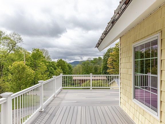 This 3-level chalet-style home is nestled in the Green Mountains on a private, 2-acre wooded lot. Located just minutes from the iconic villages of Waterbury Center and Stowe, VT, this mid-century custom home echoes a classic alpine design with a large wrap-around deck and balcony to take in the surrounding mountain views. The property includes lush lawns, gardens, fruit trees, and back deck. The home's 3 levels of living space feature an open concept kitchen/dining/living room plus 1 bath and bedroom on the main floor. The custom eat-in kitchen is a showstopper with tons of wood cabinetry, counter space, breakfast bar, 2 sinks, and 5-burner gas stovetop. Two sheet rocked bedrooms and a 2nd bath are on the top level of the home, with a balcony off one room with great views. On the lower level is an inviting, covered front entrance & mudroom, a comfy den with wood stove, laundry area, cold storage, and large workshop. The real star of this lovely home is the amazing alpine style Trex deck that wraps around the main level with fantastic mountain views! And a second 2-level back deck is a great place for grilling, outdoor dining, and a hot tub. To top it off, the oversized 2-car garage is fully heated and plumbed throughout with a compressed air piping system, perfect for woodworking hobbies or an in-home business. With world class skiing and golfing just a short drive away, this location is an outdoor enthusiast's dream. Many area breweries & eateries too! Don't miss it!