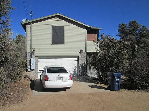 What a great home with a PRIVATE wooded area with AWESOME views and even a SEASONAL CREEK. This home is in BEAUTIFUL condition! A new stainless steel appliance package, new composite kitchen sink with Moen faucet, new bathroom vanity/sink, mirror and two black cabinets. New blinds throughout, fresh paint in every room as well as fresh white paint on all interior doors along with all new bronze hardware, a new front door, trim and doorbell. New blinds throughout, new dining room fixture, ceiling fans and fresh paint in every room. Exterior trim is all freshly painted, new outside lightening on the garage and at front door and outside blinds on the upper deck. Between Prescott and Prescott Valley. ELGIN SEPTIC SYSTEM. 1 BRM & BATH DWN, MASTER BRM & BATH & LIVING QUARTERS UP. ON A DIRT ROAD.