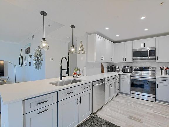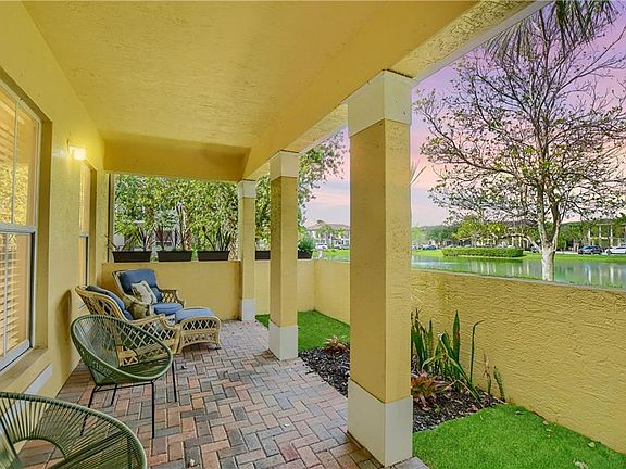 Experience lakeside luxury in this stunning villa boasting breathtaking views from the primary bedroom & private patio. Revel in the stylishly remodeled kitchen, complete w/quartz counters, dual-toned shaker cabinets, a custom backsplash, & high-end smart Samsung appliances, all perfectly complemented by a stainless steel sink w/commercial faucet. Your exquisite home features ample storage, LVT waterproof floors, & a spacious in-unit laundry room. Benefit from the attached garage or walk to the Promenade across the street! Indulge in the comfort of 2 generously-sized bathrooms, each w/shower/tub combos & large vanities. This is your sophisticated haven that harmoniously blends modern living w/a picturesque lakeside setting. Take the self guided tour w/the Virtual tour link & stay friendly!