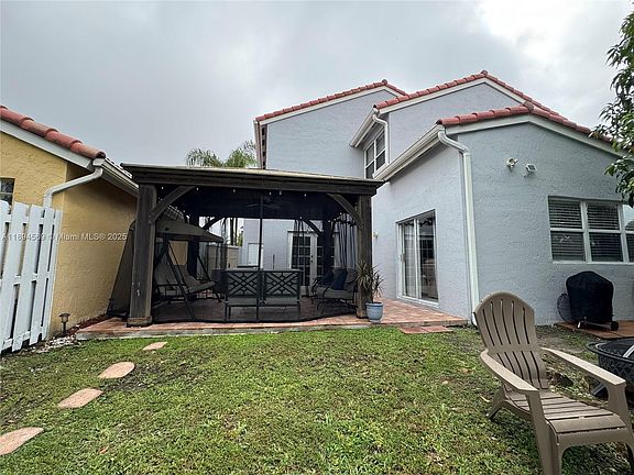 This Move in ready, 4-bedroom 2.5 bath home offers Bright and Airy floor plan with waterfront views from Florida Room, kitchen and master bedroom. Located in sought out Huntington area, surrounded by A+ rated schools with easy access to I-75 and Turnpike. Near great shopping malls like the Pembroke Gardens Open Mall and others. Lots of Parks, Lakes and walking paths. Situated on a private street with no back yard neighbors. Enjoy your time with family & friends at rear Gazebo which includes a bubbling Hot Tub! Open kitchen features granite counter tops, new cabinets & stainless-steel appliances. Fully remodeled baths! No Flood zone X, no flood insurance required. Easy to show.