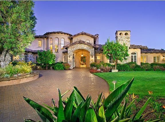 This is a magnificent example of a custom designed and expertly executed home where the attention to detail is second to none. The private, elevated location was chosen specifically to capture the south facing orientation afforded the natural, boulder waterfall pool and spa where all-day sun shines on the water and surrounding patios. The covered, heated loggia is an ideal venue for fireside enjoyment or outdoor living so popular in this California coastal community.The exterior, with hand chiseled Osage limestone and Chaparral ledger stone and accented with warm butter-colored stucco, provides the color palate for the quality details and finishes found inside. Vintage lumber beams, stone flooring with matching baseboard, richly-stained furniture-quality Alder cabinets, solid Alder doors and dual-pane Pella windows are found throughout. Five custom, masonry fireplaces with hand-wrought iron doors, 2 distinctive powder rooms, an integrated business-quality phone system, multi-zoned heating and air conditioning systems and a Crestron whole home music system are just some of the exclusive features. Five oversized en-suite bedrooms with supersized closets, including a glamorous main floor Master suite with spa-like bath, two generous closets and dedicated gym, provide ample space for relaxation and privacy. The office/library with hand hewn Pecan floors, Alder book shelves and separate walk-in equipment room provides an ideal home office environment. The professionally equipped kitchen with furniture-like built-in refrigeration, dual dishwashers, two ovens and a six burner gas stove will delight the most discriminating gourmet. The warm and inviting family room, with wet-bar and temperature controlled wine room, and the adjacent game room are conveniently located for entertainment of large groups or for the quiet enjoyment of just a few. An oversized attached 5-car garage with dedicated storage space complements this exceptional home in one of the most sought-after gated communities in Southern California.