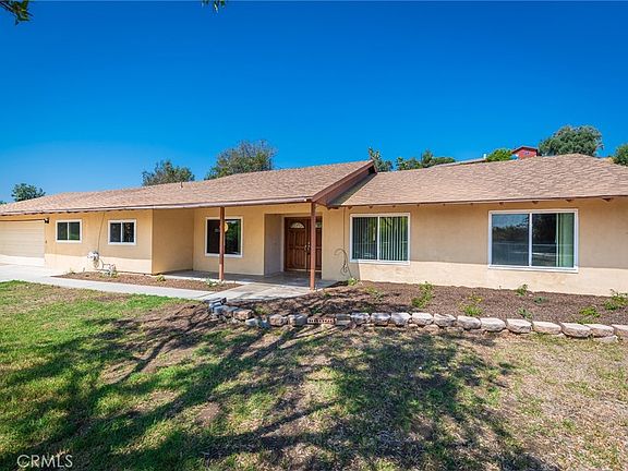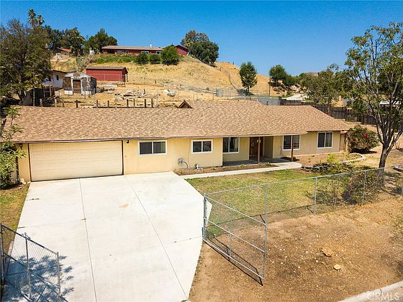 The two car garage is just through the door which makes it easy to carry in groceries. When you are tired from the day you can retire to your master bedroom and good sized bathroom with a vanity area where there are two closets with plenty of room for all your clothes and shoes. Bathroom has a good sized shower. Three additional bedrooms complete this home and there are some built in cabinets which could be handy if you work from home. The hall bath has a tub/shower combo and both bathrooms were remodeled with pretty new wood cabinets and tile showers. Did I mention that the windows and slider are newer. Let’s go outside. A gate across the driveway offers privacy. There is also a side gate for easy access to landscapers or guests parking on the Cul-de-sac. To the left of the two car garage a double gate opens. The front yard just had trees trimmed and sprinklers repaired with a new timer so that the grass will start to green up.The backyard is waiting for someone to give it some love. It’s a huge yard and there are fruit trees and plenty of room for a larger patio,pool,spa or whatever you want. Not only is the main yard waiting but there are stairs leading to an upper level that is flat. Remove the old shed and you could put something else there. Looks like there is a gate for access to that area from the cul de sac. Buyer needs to check zoning but could be R-A which may allow ADU. Discrepancy because some records show this as a lot size of 20,473 and others show 27,878. Buyer to verify lot size. Accuracy of square footage,lot size and other info not guaranteed so buyer,their agent/broker to verify all info and to do their own due diligence.