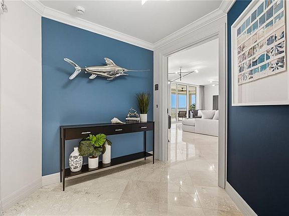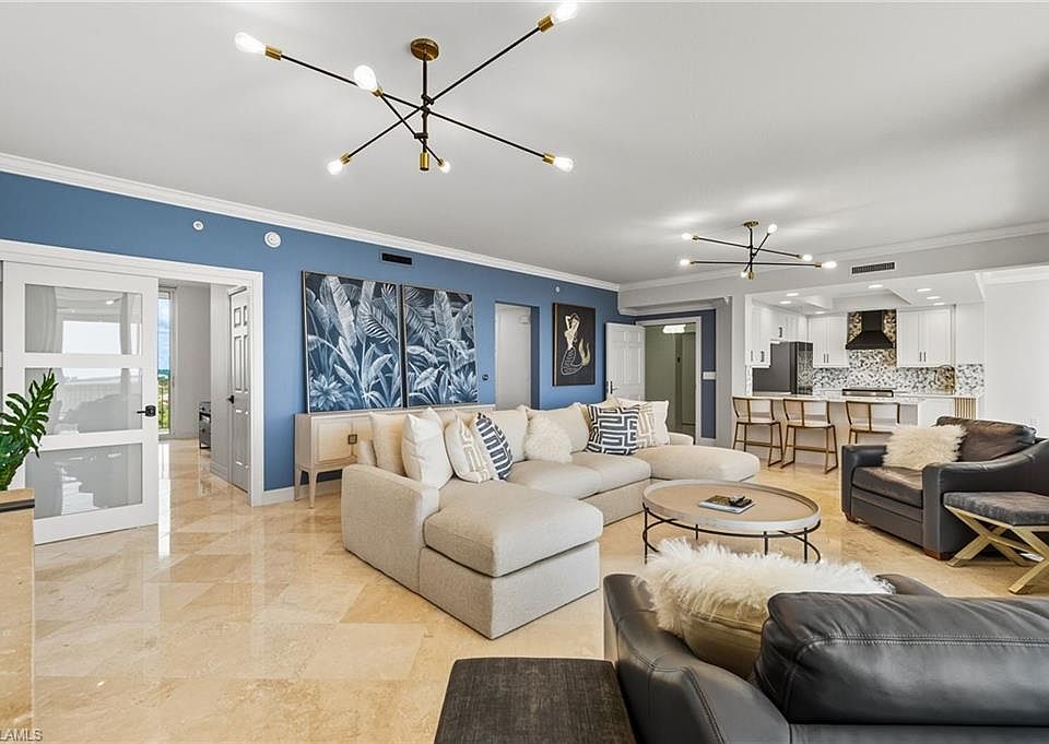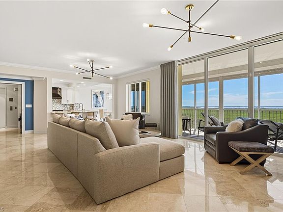 Prepare to be WOWED when entering this magnificently updated 9th floor condo in Jasmine Bay within prestigious West Bay Club, offering an unparalleled blend of luxury, modern design, and functionality. Recent upgrades include a brand-new chef’s kitchen with custom cabinets, stylish backsplash, new appliances, quartz countertops, and hooded range. This residence boasts meticulous attention to detail with premium finishes and thoughtful touches throughout. Enjoy breathtaking views and stunning sunsets over Estero Bay, and the Gulf of America through floor-to-ceiling sliding glass doors in the great room and master suite. Offering 3 spacious bedrooms and 3 bathrooms, two private balconies, and an expansive open floor plan, this home delivers a profound sense of spacious luxury. The residence features custom interior appointments like marble flooring, neutral finishes, tray ceilings, and electric hurricane shutters. Jasmine Bay amenities include a shared infinity edge pool, fitness room, gas grills, hot tub, cabanas and 4 private guest suites that are perfect overflow space for visiting family and friends. West Bay Club is a premier lifestyle community that is very inclusive, in that all of the amenities other than the private golf club are included in the HOA fees. These assets include a brand-new private Beach Club with restaurant/bar, chair and towel service directly on the Gulf, the newly renovated Bay House with resort style pool, Aqua Cafe restaurant and state of the art fitness center. Also, you will have access to the River Park with fishing pier, boat launch w/Gulf access, kayaks/canoes, playground, boat storage, basketball court, 6 pickleball courts, 8 Har-Tru clay court tennis facility, Bocce and 2 dog parks. Memberships are also available for the private 18 hole Pete and PB Dye golf course and clubhouse.