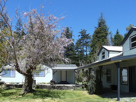 Beautifully upgraded 2/2 home on 4 acres with 2 workshops, one office or storefront with paved parking, zoned RC to include both residential and commercial use. Nice kitchen with new quartz counter-tops and island. Master bedroom with its own entrance and deck. Has a new treehouse that can be used as playhouse or a studio. Small orchard with apple, peach and plum trees, plus two other very productive heirloom variety apple trees. Excellent well with abundant, pure water. Several outside water spigots throughout the property. Back of property has an acre surrounded by beautiful forest with cleared building sites. More planned upgrades, including an ADU (additional dwelling unit) for the smaller shop.